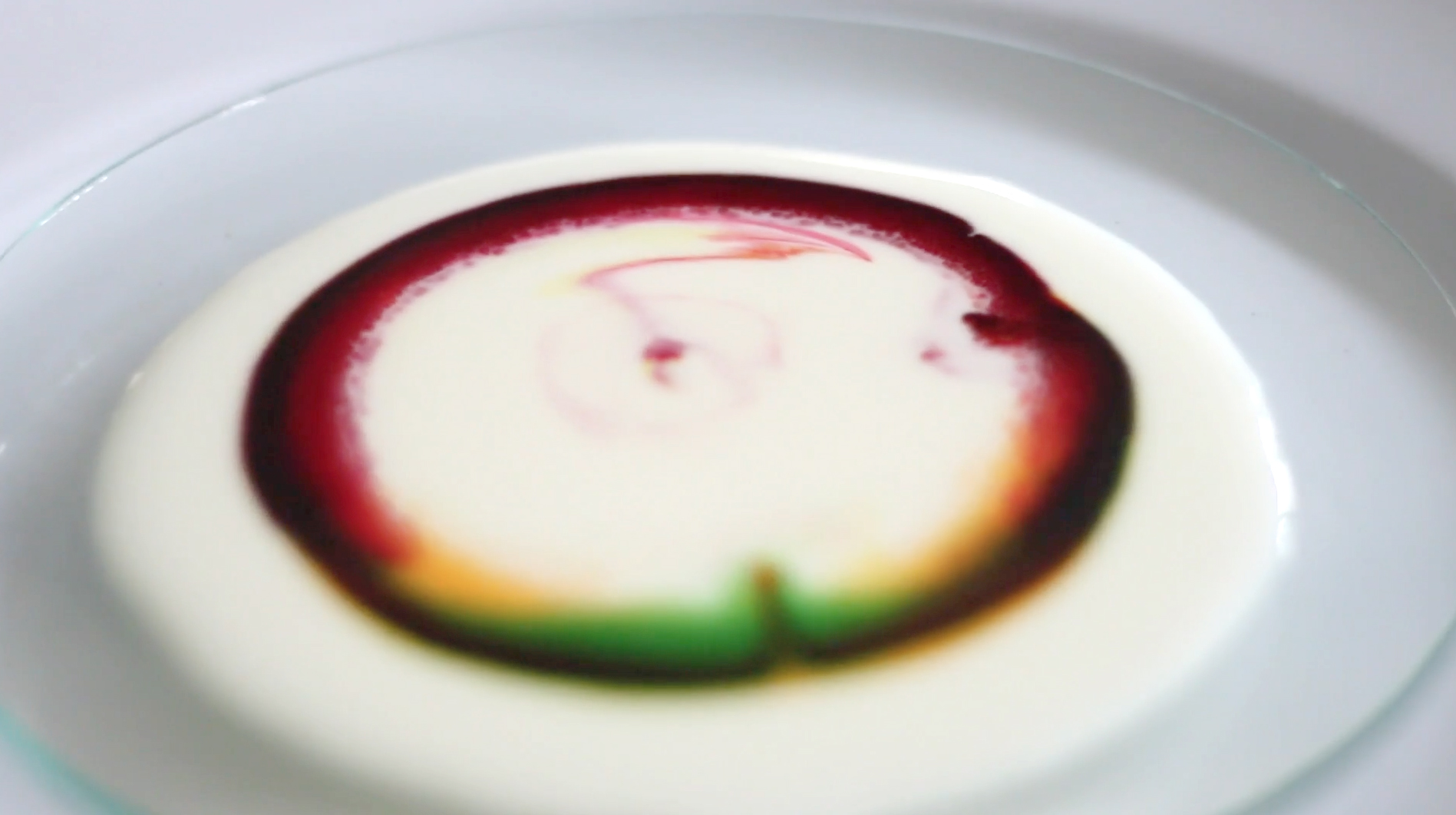 - Pour milk on a dinner plate
